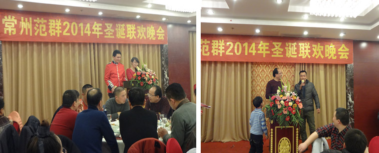 12月25日晚,在星月大酒店二樓大廳舉行常州范群2014年圣誕晚宴,公司全體員工和特邀嘉賓齊聚一堂,歡度圣誕,迎接2015年元旦的到來。晚上5點半,晚宴正式開始,首先董事長范總發(fā)言,介紹了今年公司的整體情況和目前的銷售額完成情況,今年我們范群總銷售額超過了2億元,這是全體員工共同努力的結(jié)果,也為明年的目標打下堅實的基礎。 同時也有需要改進的地方。接下來晚會表演開始,節(jié)目精彩紛呈,有小品、歌曲、二胡演奏等等,其中還穿插了抽獎環(huán)節(jié),讓晚會高潮迭起,歡笑聲不斷。本次晚會由公司工會組織,各部門積極參與,所有節(jié)目都是由各部門員工利用業(yè)余時間自編、自導、自演。通過這臺晚會豐富了大家的業(yè)余生活,同時也表達了大家對美好生活的向往和對新年的期待,整場晚會充滿著歡聲笑語,取得了圓滿成功。