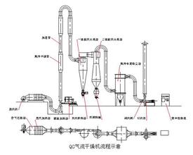 氣流干燥機(jī)是利用高速流動(dòng)的熱氣流使?jié)竦矸蹜腋≡谄渲校跉饬髁鲃?dòng)過程中進(jìn)行干燥。具有傳熱系數(shù)高,傳熱面積大,干燥時(shí)間短等特點(diǎn)。氣流干燥也稱“瞬間干燥”是固體流態(tài)化中稀相輸送在干燥方面的應(yīng)用。該法是使加熱介質(zhì)和待干燥固體顆粒直接接觸,并使待干燥固體顆粒懸浮于流體中,因而兩相接觸面積大,強(qiáng)化了傳熱傳質(zhì)過程,廣泛用于散狀物料的干燥單元操作。